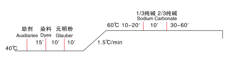 ● 工藝 寬容性大,對染色工藝條件的依賴性小,染色穩(wěn)定性好;一次成功生產率高。