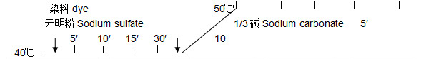 Note: According to the difference of the equipment and the adjustment of the process. This process is suitable for dyeing of overflow, vapor liquid, and vapor flow equipment.